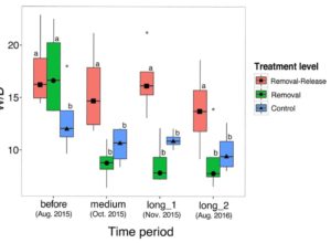 Abstract: Understanding the factors influencing 137Cs concentrations in freshwater salmonids is crucial for reviving inland fisheries in polluted regions. We studied seasonal variations of 137Cs concentration in charr (Salvelinus leucomaenis) through uptake and metabolism in forested headwaters at Fukushima and Gunma sites. Charr consumed both terrestrial and aquatic animals, and terrestrial prey was predated more in summer at both sites. The 137Cs concentrations in litter, which is a dominant basal food resource of both forest and stream ecosystems, differed between forest and stream due to 137Cs leaching effect on litter submerged in streams. The concentration difference in both litter and prey was greater at Fukushima site than at Gunma site. The estimated prey 137Cs concentration at Fukushima site peaked in summer when terrestrial preys are most available, whereas it remained relatively constant at Gunma site because of the small difference of 137Cs concentrations in between terrestrial and aquatic preys. The specific metabolic rate of charr was commonly changed with stream water temperature, greatest in summer, and lowest in winter at both sites. Because both prey 137Cs concentrations and specific metabolic rates peaked in summer, the combination of uptake and metabolism at Fukushima site largely negated seasonal 137Cs fluctuations in charr, whereas specific metabolic rate fluctuations could be the major determinant of charr 137Cs concentrations at Gunma site. Our results suggested that 137Cs concentrations in prey items, whose seasonality are varied due to initial 137Cs fallout volume, were expected to be an important determinant for 137Cs concentrations in charr.